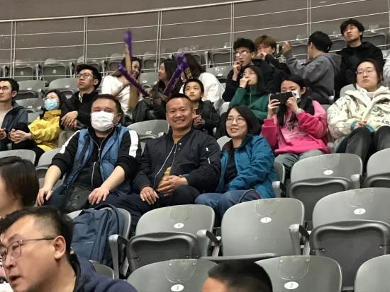 比赛开场后,双方队员迅速进入状态,场上比分交织上升,赛场气氛紧张激烈。观众席上,我院师生手持加油棒跟随场内播音员的引导不停地为场上的小伙子们加油助威。精准的三分、漂亮的盖帽、流星般的灌篮给师生们带来了一场视觉盛宴和精神享受。尤其是来自大山深处的30岁草根球员矣进宏职业生涯首秀更是燃爆了现场气氛,开创了CBA联赛历史的先河,让个人梦想照进了现实,也很好的诠释了体育精神——永不放弃,就有可能成功。
